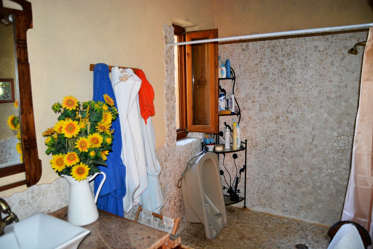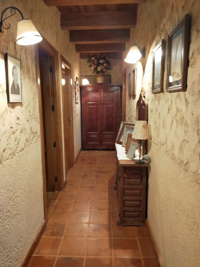 A beautiful 4-bedroomed stone-clad country house just a stone's throw from the sleepy village of Villasbuenas de Gata. Set in 2.5 hectares (7.25 acres) of land with 300 productive olive trees plus oak and cork trees, this is the ideal house for a couple or a family who are looking for peace and quiet but wish to be involved in village life. The house has a 200m2 footprint, a medium-sized kitchen with wood-fired Aga, a separate dining area, a comfortable south-facing living room with woodstove, four medium-sized bedrooms, two bathrooms (one en suite) and a large, bright 75m2 mezzanine with a balcony over-looking the olive grove to the east. The roof beams are made of durable and attractive chestnut wood and is well-insulated for the colder months, the house has mains electricity and there are 2 boreholes, one of which provides up to 3000 litres per day while the other has never been used. Cooking is with electricity in the summer months and a Wood-fired Aga in winter. Water for showers, etc. is heated in a thermos tank. This house is definitely worth a visit and is being sold fully furnished.