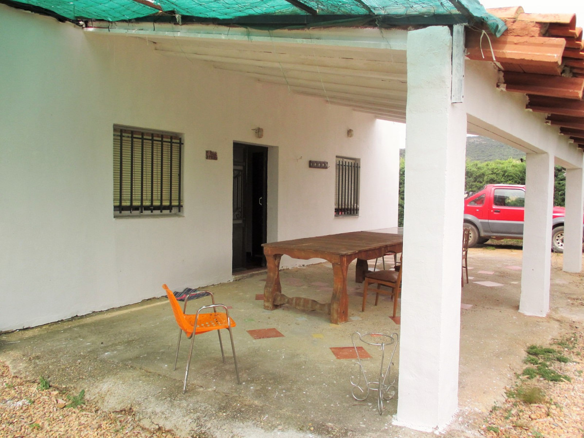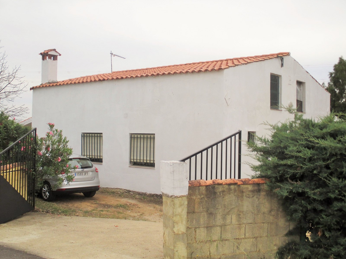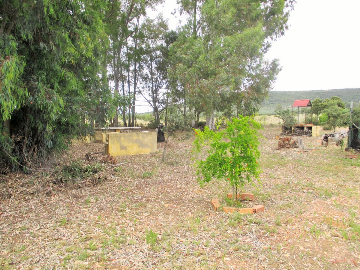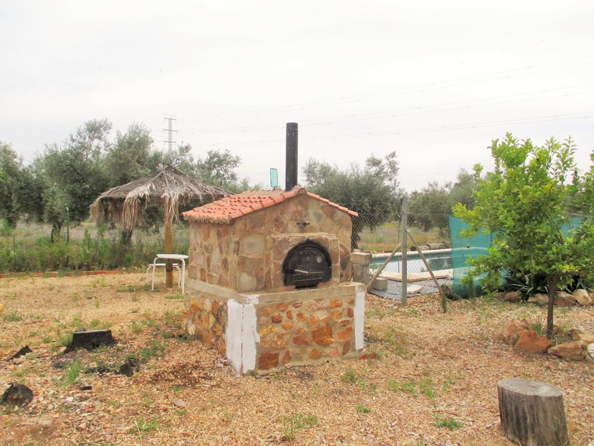 A good size country house in very good condition in a quiet location on the Pilgrims' route to Guadalupe, with excellent access 8km from the village of Casas de Don Pedro and just 1km from a large lake (Embalse de Gargáligas). There is a covered veranda leading to a good size central living room, 4 bedrooms, 2 bathrooms. As the house is only used at weekends and in the summer there is no kitchen as the owners cook outdoors but it would be easy and cheap to install one either in the corner of the living room where all plumbing has been installed or in the 4th bedroom. Also although the house is wired for electricity only one solar panel is connected at the moment, but the owner (who works at the Town Hall) tells us that the line from the solar farm which feeds the village runs just behind the property and the house could be connected to mains solar power for around 1,000 euros - much cheaper than installing your own! Outside there is 2,000 sq m of garden with a swimming pool, barbecue, oven and stone dining tables. The garden has mature eucalyptus trees providing good shade, pomegranate and lemon trees.