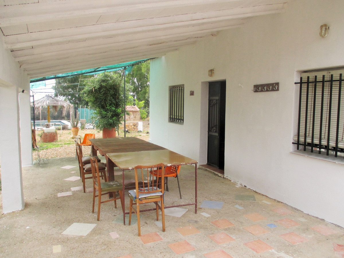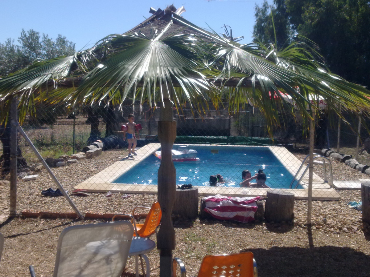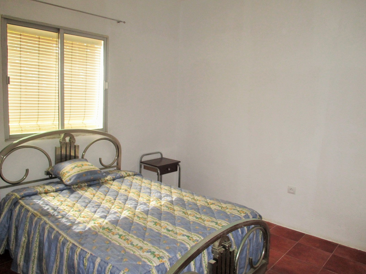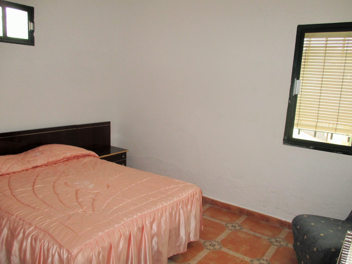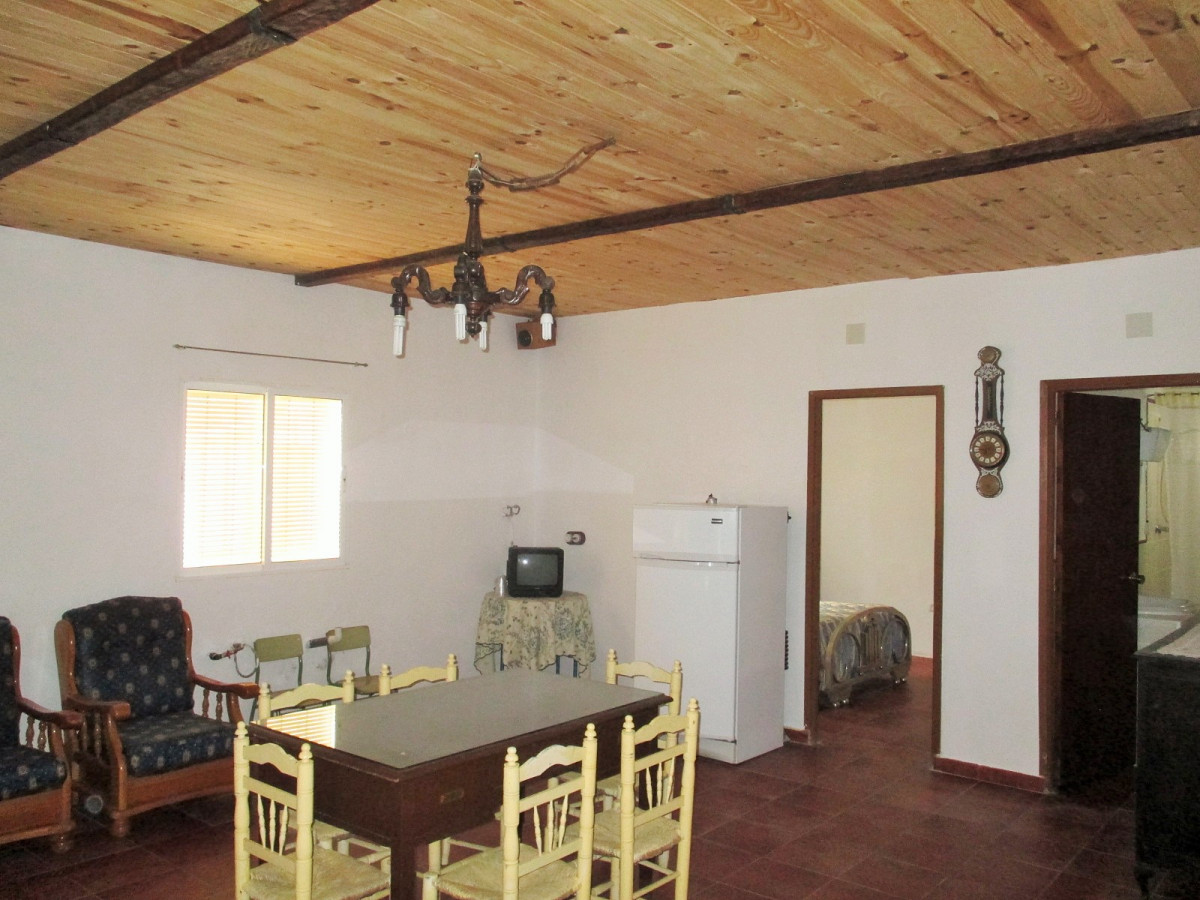 A good size country house in very good condition in a quiet location on the Pilgrims' route to Guadalupe, with excellent access 8km from the village of Casas de Don Pedro and just 1km from a large lake (Embalse de Gargáligas). There is a covered veranda leading to a good size central living room, 4 bedrooms, 2 bathrooms. As the house is only used at weekends and in the summer there is no kitchen as the owners cook outdoors but it would be easy and cheap to install one either in the corner of the living room where all plumbing has been installed or in the 4th bedroom. Also although the house is wired for electricity only one solar panel is connected at the moment, but the owner (who works at the Town Hall) tells us that the line from the solar farm which feeds the village runs just behind the property and the house could be connected to mains solar power for around 1,000 euros - much cheaper than installing your own! Outside there is 2,000 sq m of garden with a swimming pool, barbecue, oven and stone dining tables. The garden has mature eucalyptus trees providing good shade, pomegranate and lemon trees.